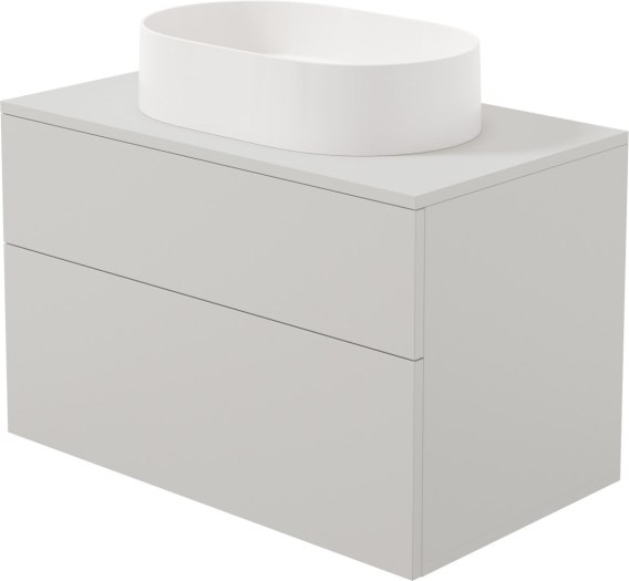 Szafka urzeka minimalistycznym i funkcjonalnym designem. Kaszmirowy kolor nadaje jej niezwykłej harmonii i subtelnego uroku. Dwie przestronne szuflady z pełnym wysuwem i cichym domykiem zapewniają wyjątkowy komfort użytkowania, a nowoczesny mechanizm push to open podkreśla jej innowacyjny charakter. Lakierowany blat z otworem na syfon idealnie współgra z umywalką nablatową, tworząc harmonijną i spójną kompozycję.