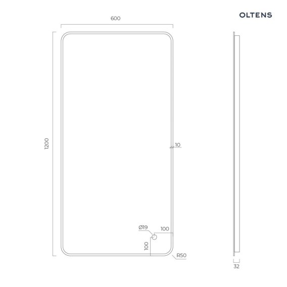 Nordlis Oltens Nordlis lustro 60x120 cm prostokątne z oświetleniem od tyłu z matą grzewczą czarny 64121300