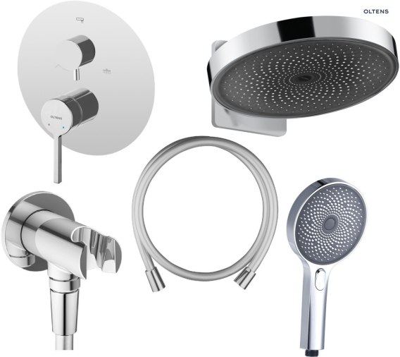 Rann Oltens Rann zestaw bateria wannowo-prysznicowa podtynkowa z deszczownicą Vann i słuchawką 3 funkcyjną Havis EasyClick chrom 3607