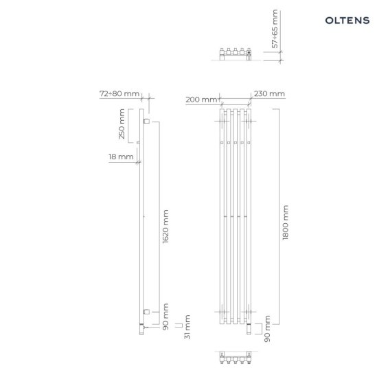 Stang Oltens Stang S (e) grzejnik łazienkowy 180x23 cm czarny mat 55126300